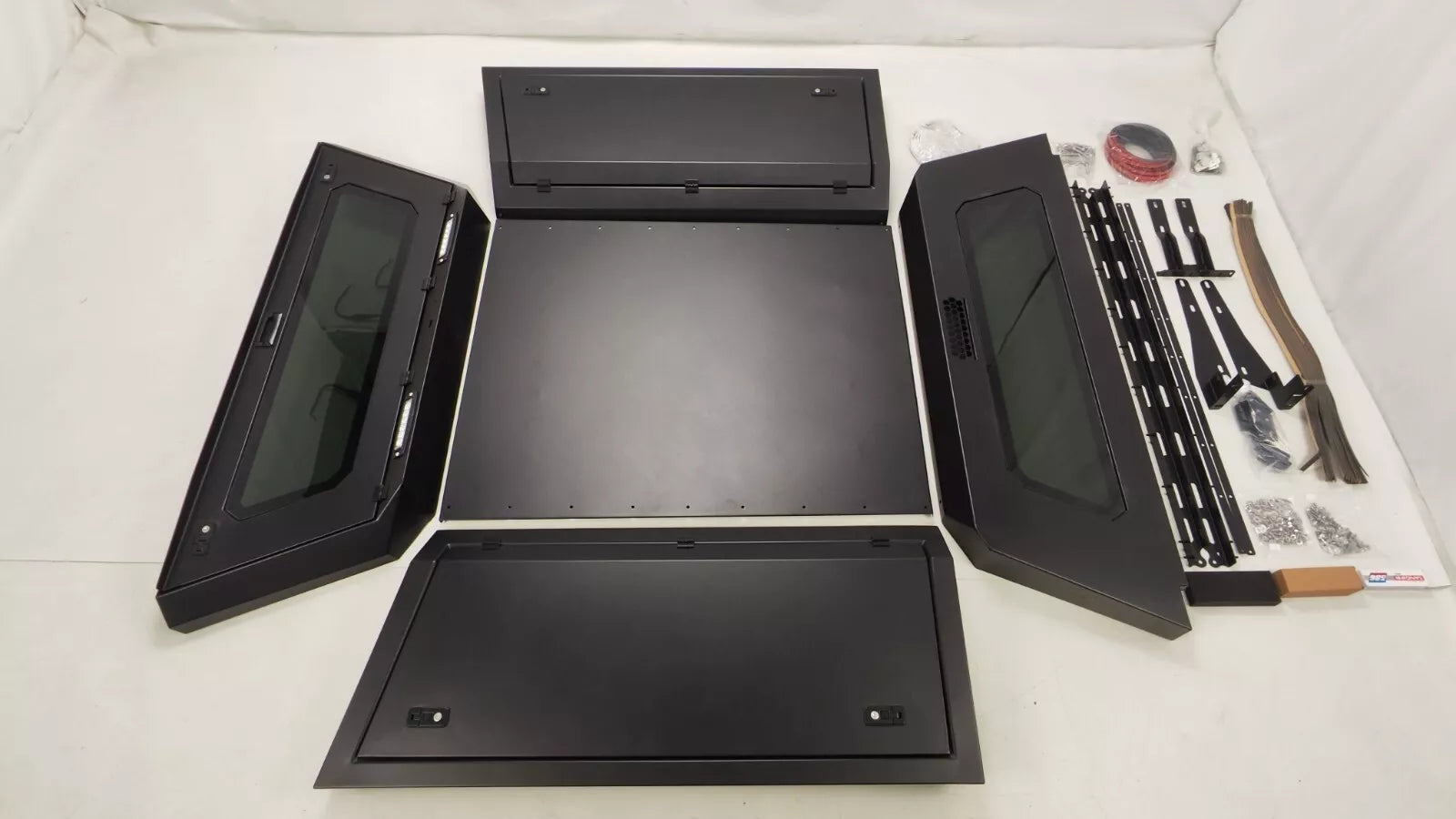 1x Flat-packed canopy kit (side panels, roof, rear door)